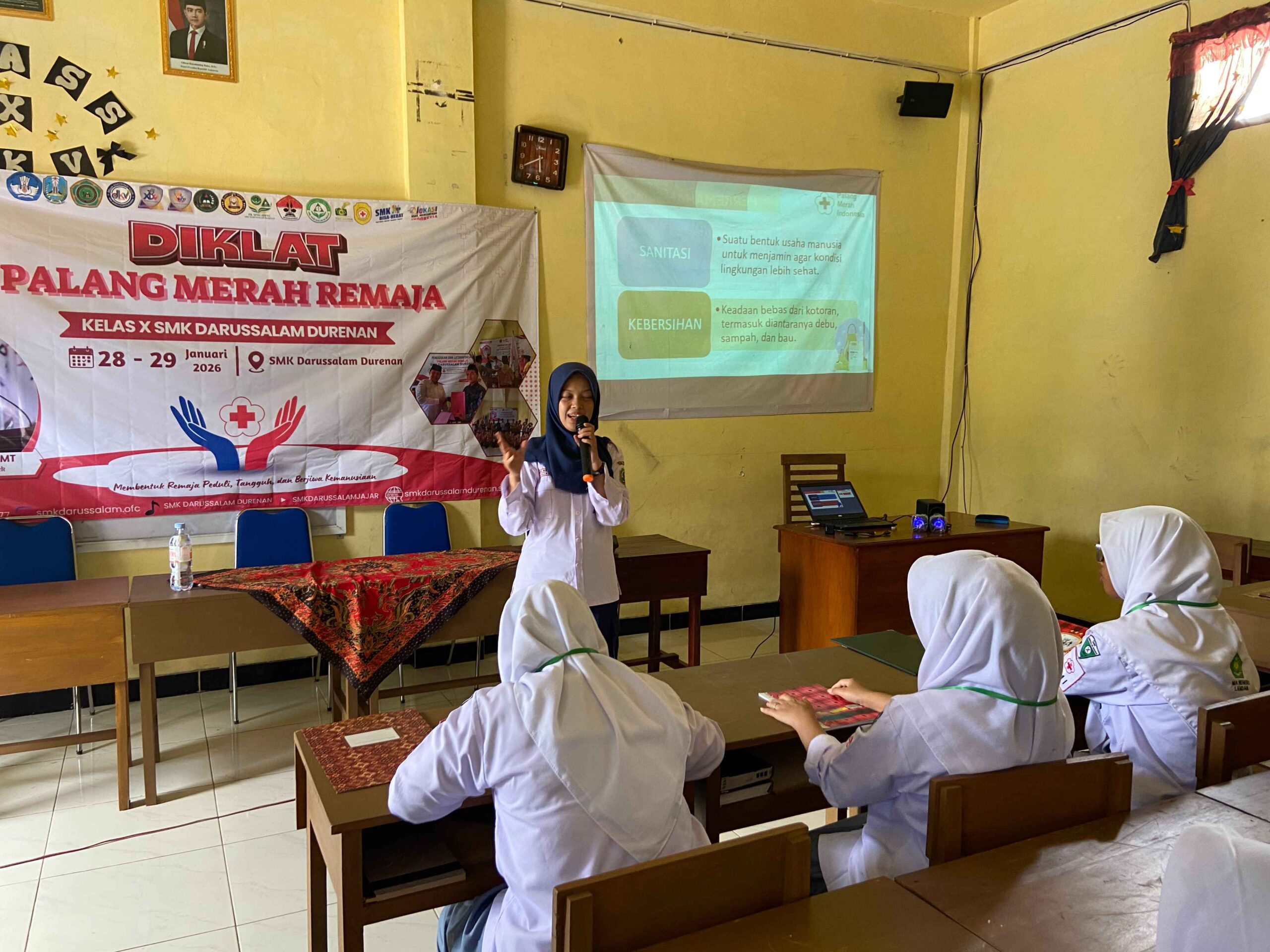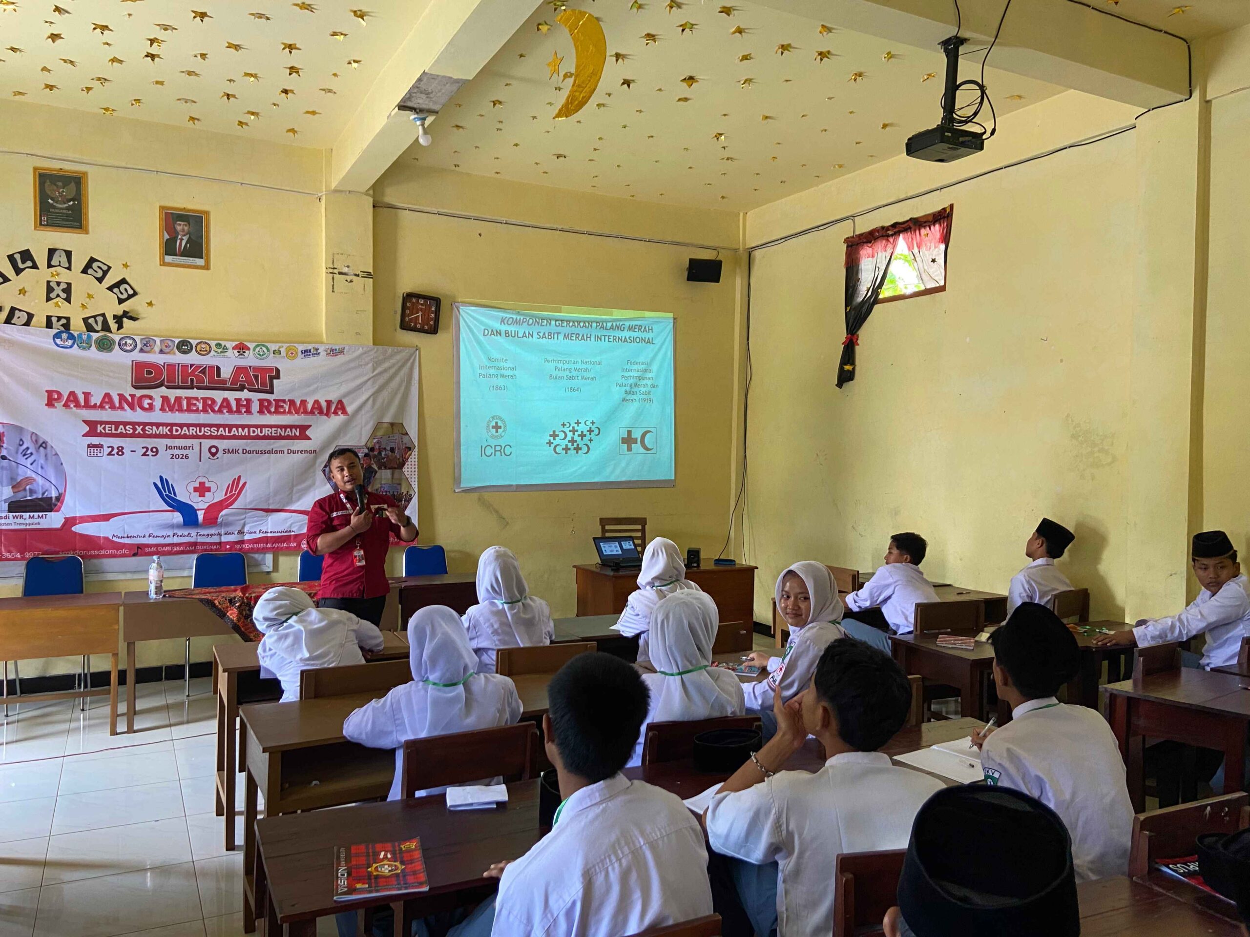 Durenan, 28 Januari 2026 — SMK Darussalam Durenan melaksanakan kegiatan Diklat Dasar (Diklatsar) Palang Merah Remaja (PMR) bagi siswa kelas X yang berlangsung selama dua hari, yakni pada 28–29 Januari 2026. Kegiatan ini bertujuan untuk membekali siswa dengan pengetahuan dasar kepalangmerahan, kesehatan, serta menumbuhkan sikap peduli, tanggap, dan berjiwa kemanusiaan.