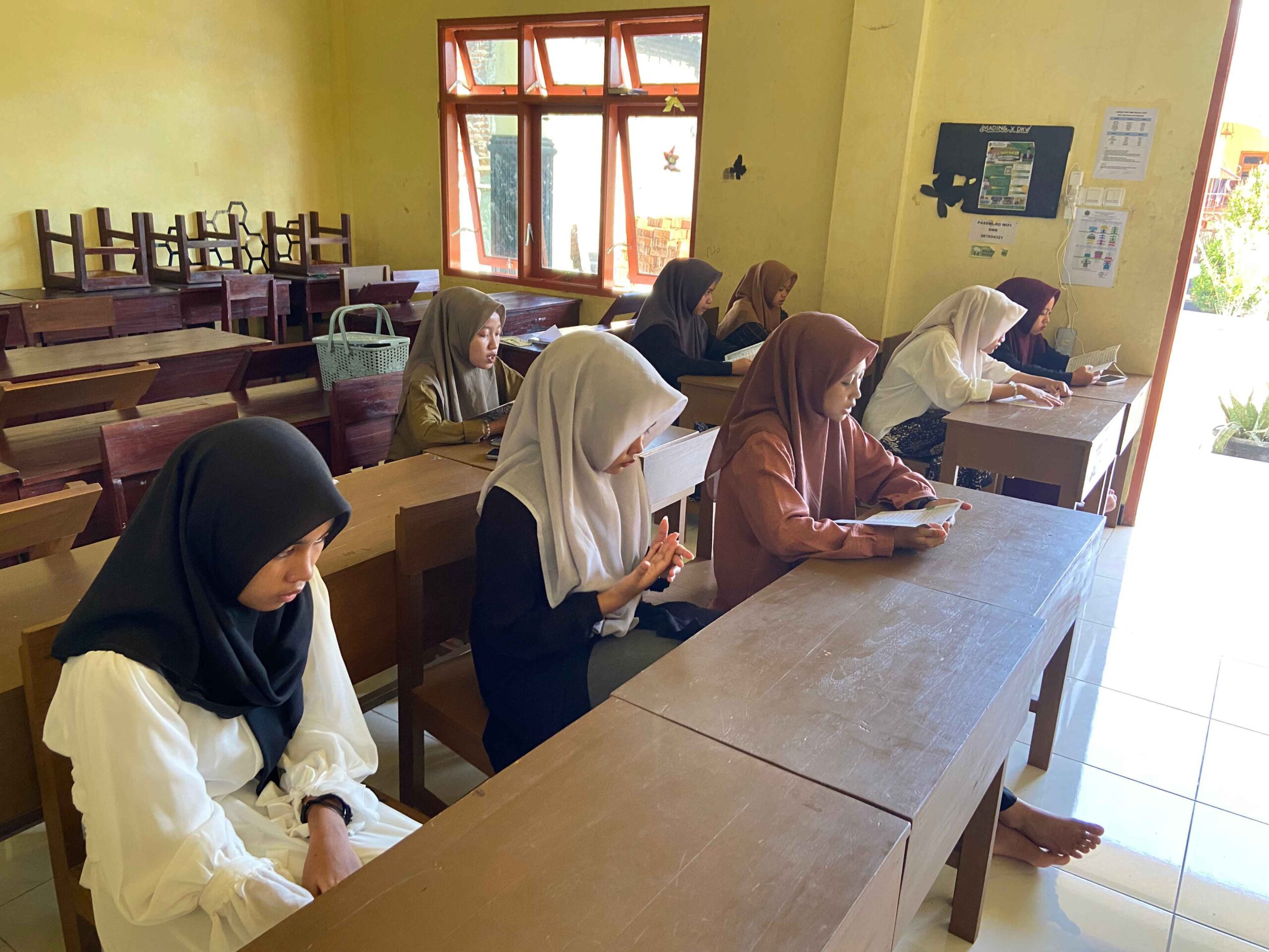 Kegiatan pada hari ketiga diawali dengan sholat dhuha berjamaah yang diikuti oleh siswa kelas X dan XI DKV SMK Darussalam bersama Bapak dan Ibu guru. Ibadah bersama ini menjadi pembuka kegiatan dengan suasana khidmat sekaligus sebagai pembiasaan bagi para siswa untuk memulai aktivitas dengan mendekatkan diri kepada Allah SWT.