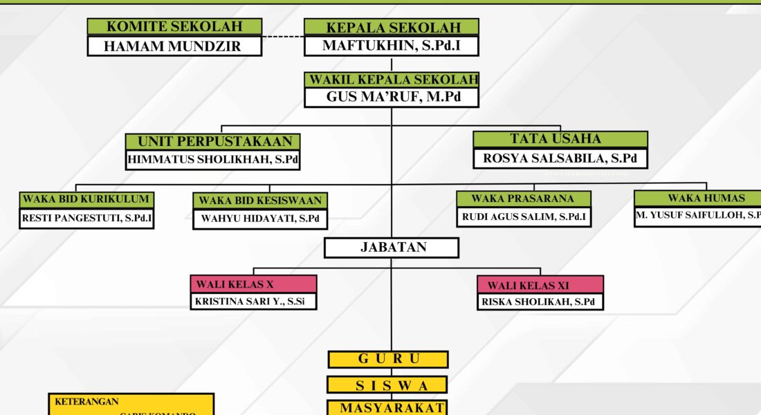 Wakil Kepala Sekolah dijabat oleh Gus Ma’ruf, M.Pd, yang membantu Kepala Sekolah dalam pelaksanaan tugas manajerial, koordinasi antarbidang, serta pengawasan program kerja sekolah. -