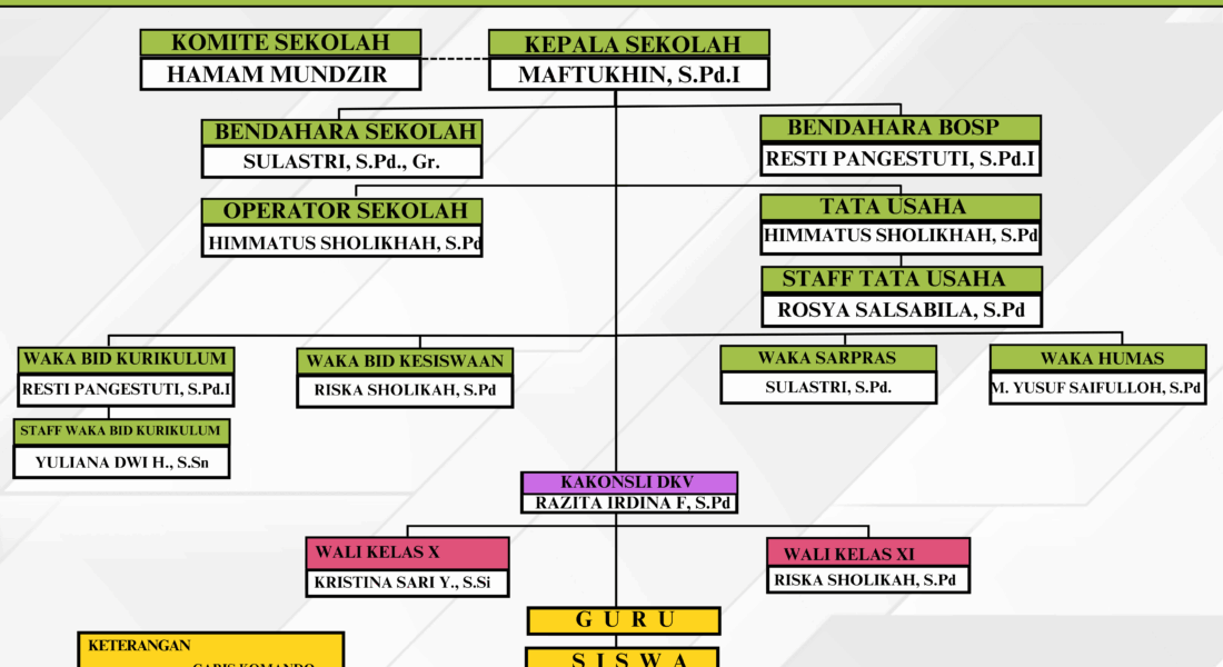 Seluruh unsur tersebut bekerja secara terpadu dalam garis komando dan koordinasi untuk mendukung terciptanya proses pendidikan yang berkualitas, sehingga mampu menghasilkan lulusan yang kompeten, berkarakter, serta siap berkontribusi bagi masyarakat.