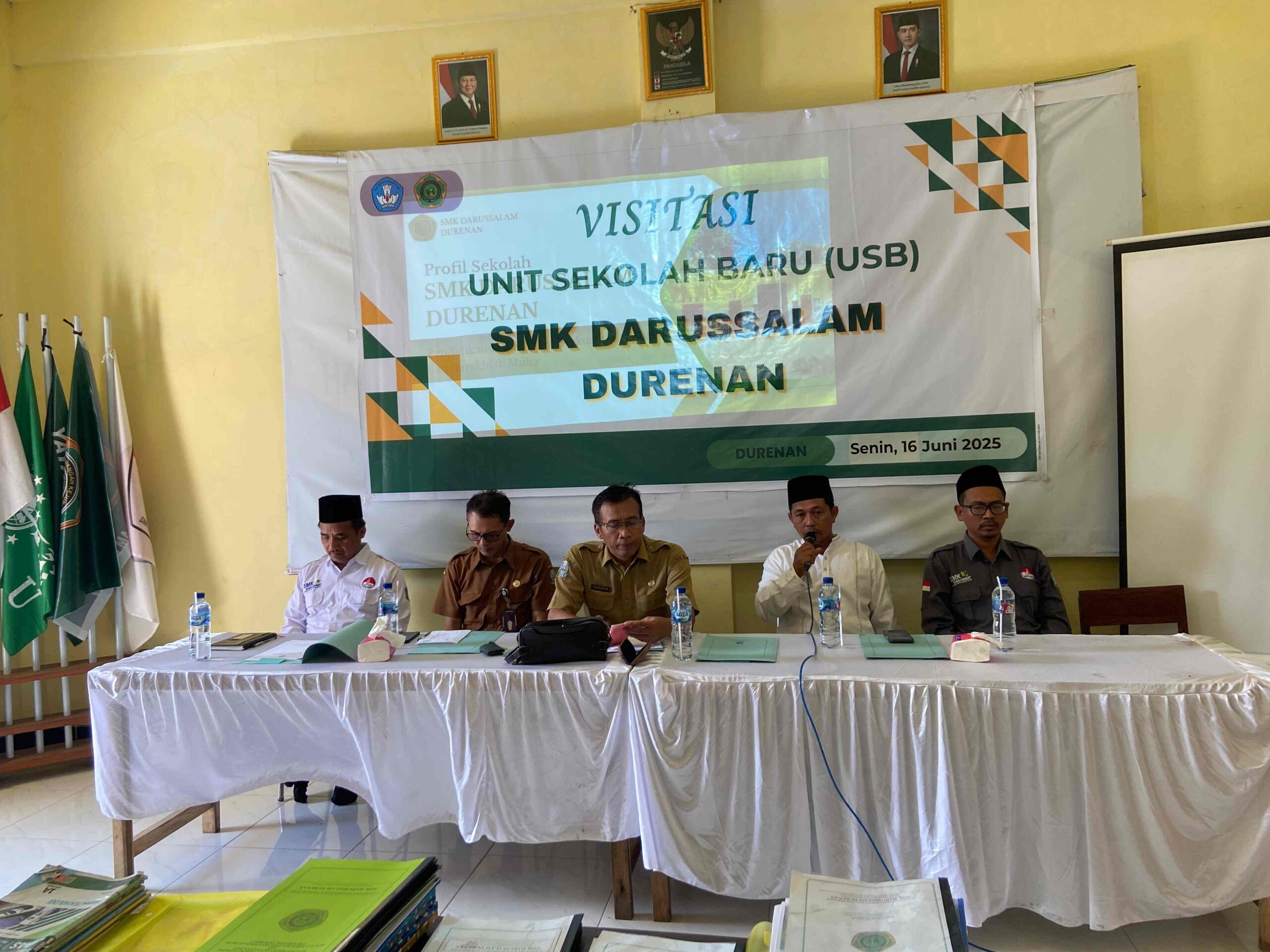 Trenggalek, 16 Juni 2025 — SMK Darussalam Durenan menerima kunjungan Visitasi Unit Sekolah Baru (USB) pada Senin (16/06/2025) sebagai bagian dari proses verifikasi lapangan dan penilaian kelayakan pembukaan layanan pendidikan baru di sekolah.
